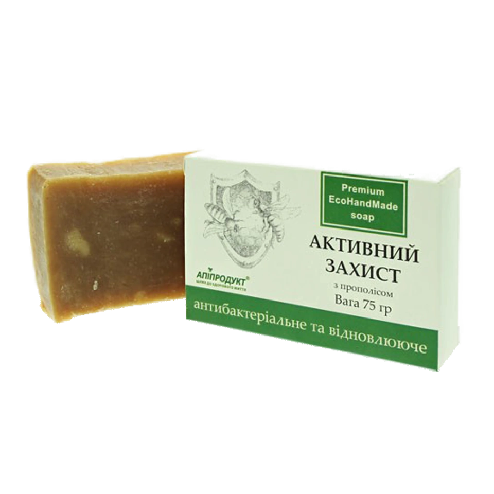Мило активний захист з прополісом від «Апіпродукт» — продукт, який виготовляють із повагою до природи. Ми ретельно відстежуємо кожну партію, тому ви отримуєте 0.075 кг натурального меду без консервантів, ароматизаторів і барвників.